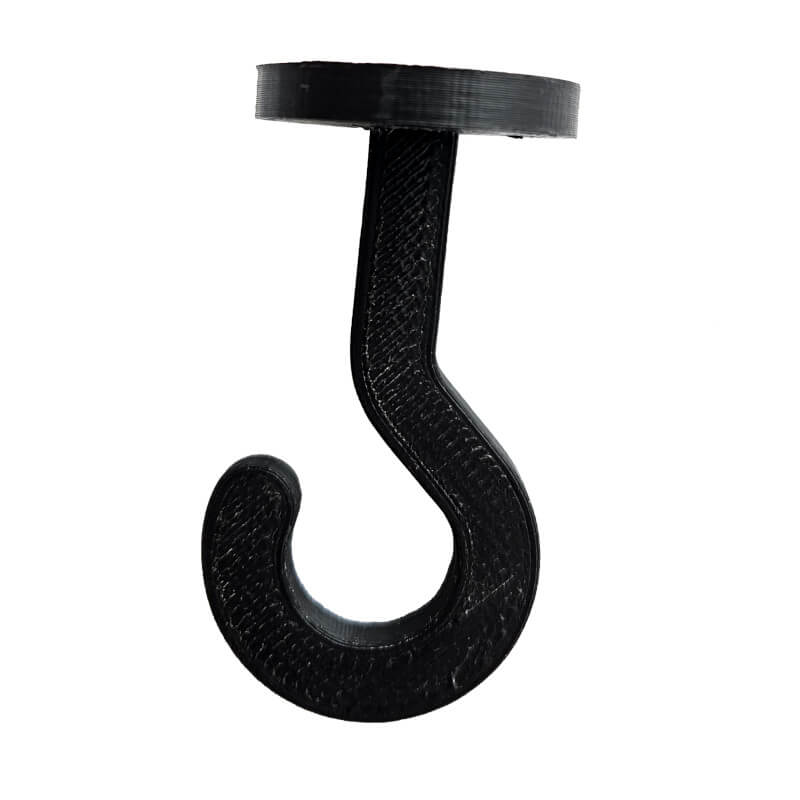 Haczyk stalowy do wieszania kurtyn spawalniczych i ochronnych oraz pasów lameli, w przypadku kiedy lamele posiadają wgrzane lub zakute oczka.