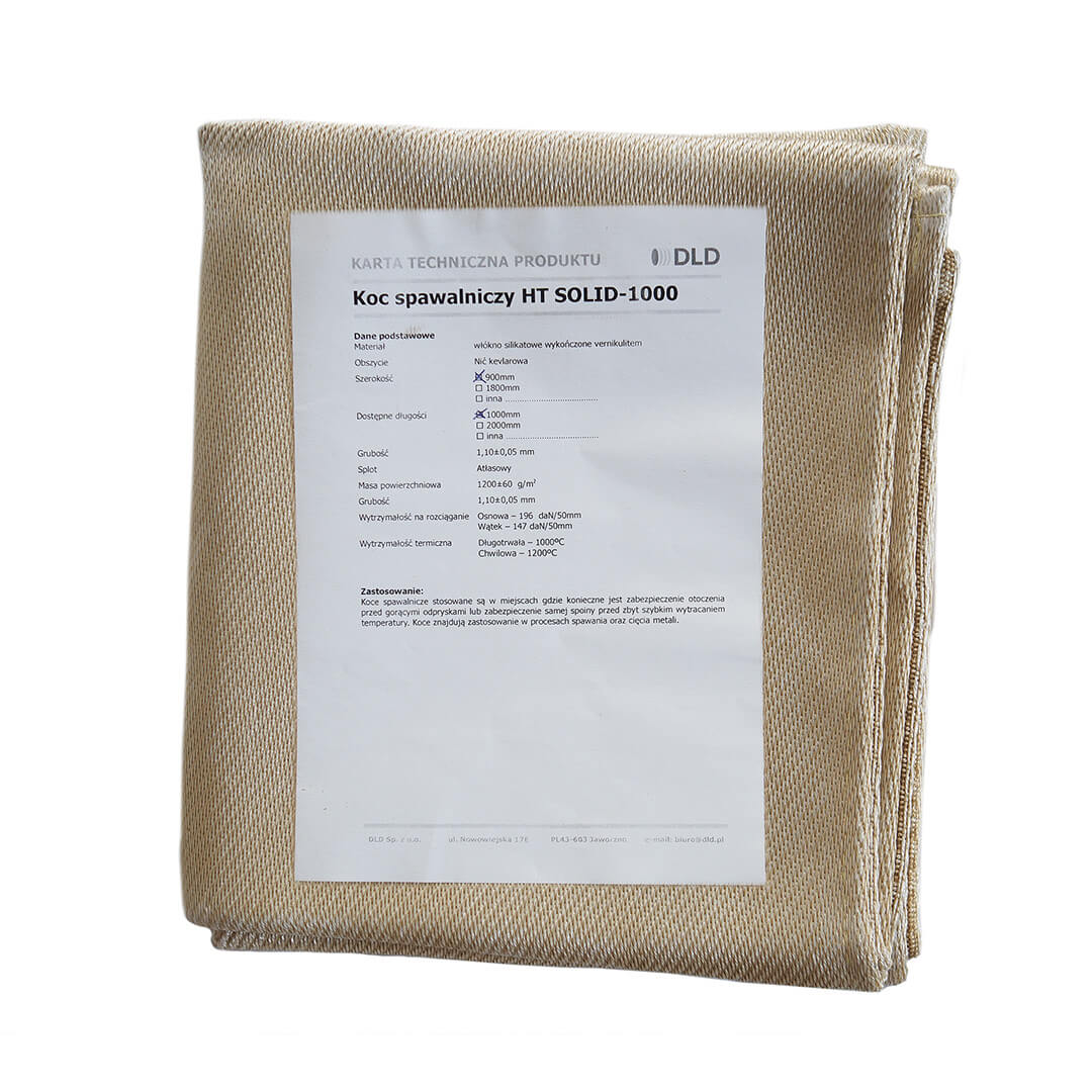 Koc spawalniczy HT Solid-1000 skutecznie chroni przedmioty przed wysoką temperaturą, iskrami oraz odpryskami podczas spawania, szlifowania i innych procesów przemysłowych. Został wykonany z włókna krzemionkowego, które wytrzymuje długotrwałe działanie temperatury do 1000°C, a krótkotrwale nawet do 1200°C. Charakteryzuje się dużą wytrzymałością mechaniczną oraz odpornością na rozerwanie, a jego solidne wykończenie nićmi kevlarowymi zwiększa trwałość. Koc jest idealny do użytku w procesach spawalniczych, cięcia i szlifowania, a także w warsztatach blacharsko-lakierniczych.