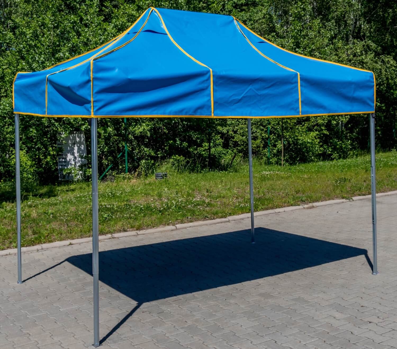 - Poszycie namiotu wykonane z trudnopalnej i samogasnącej wzmocnionej tkaniny PVC