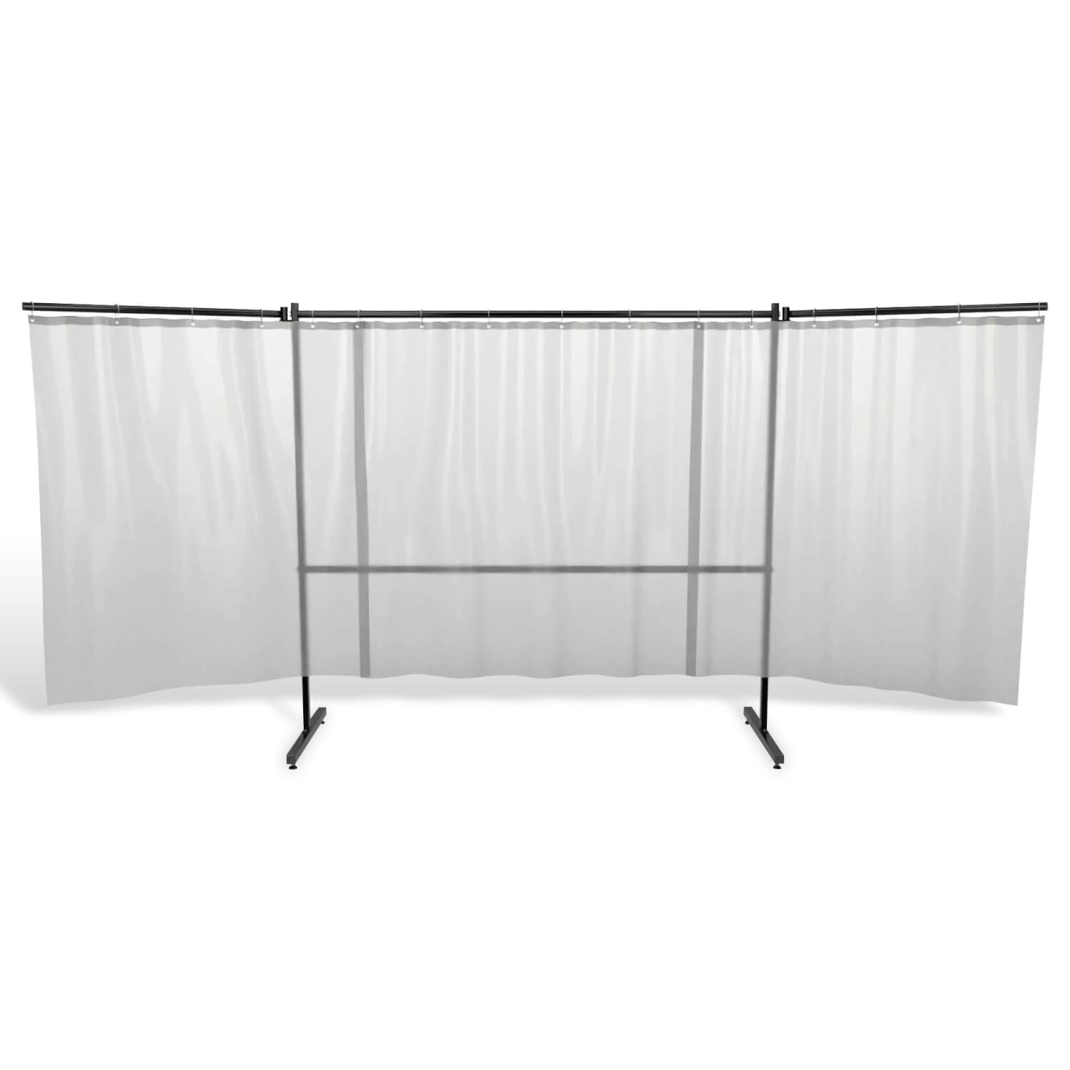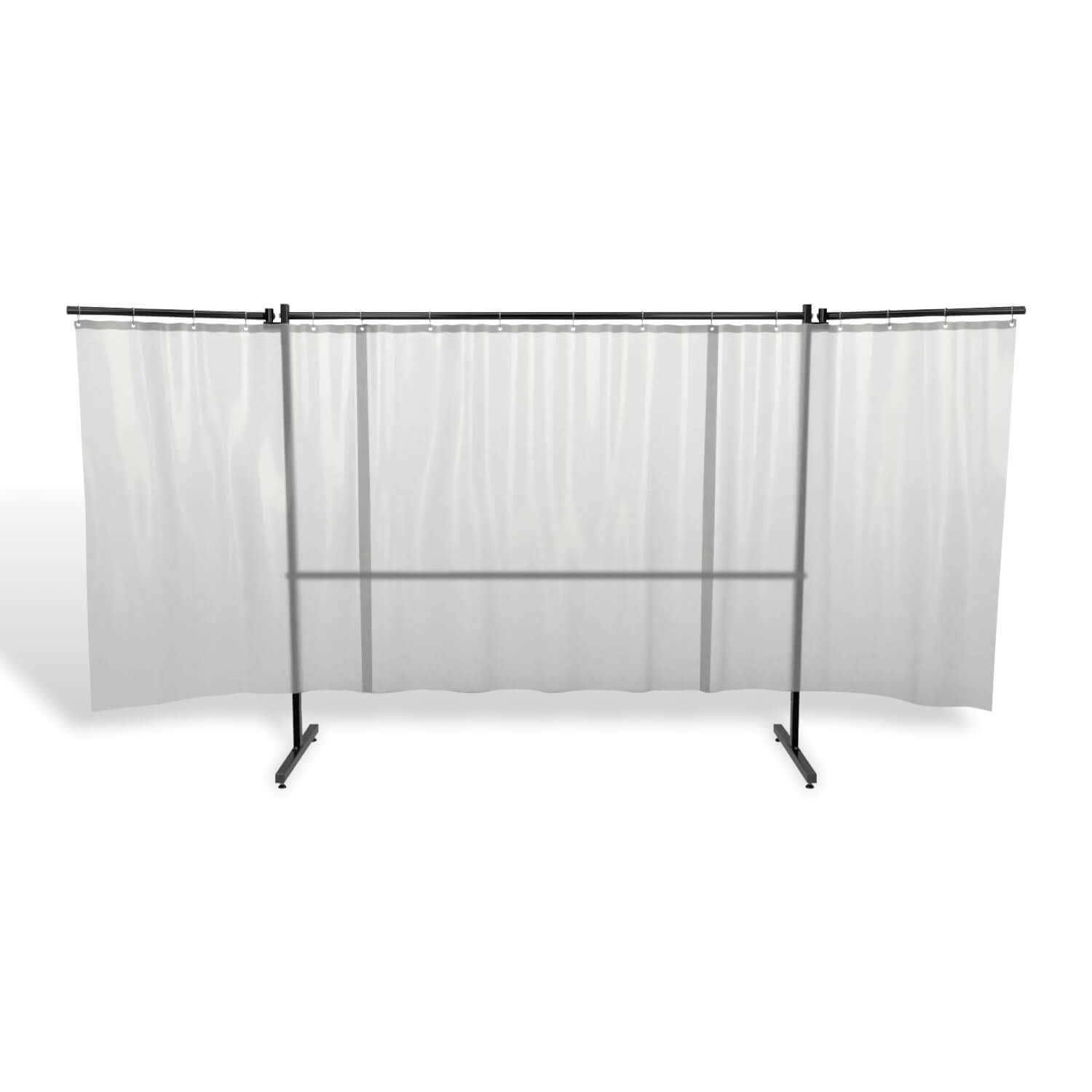 Konstrukcja parawanu SOLID składa się z dwóch pionowych słupków połączonych poziomymi rurkami. Kurtyna wisi swobodnie na górnej rurce. Konstrukcja parawanu jest pewna i stabilna. Stelaż parawanu został pomalowany proszkowo czarną farbą z delikatną strukturą.