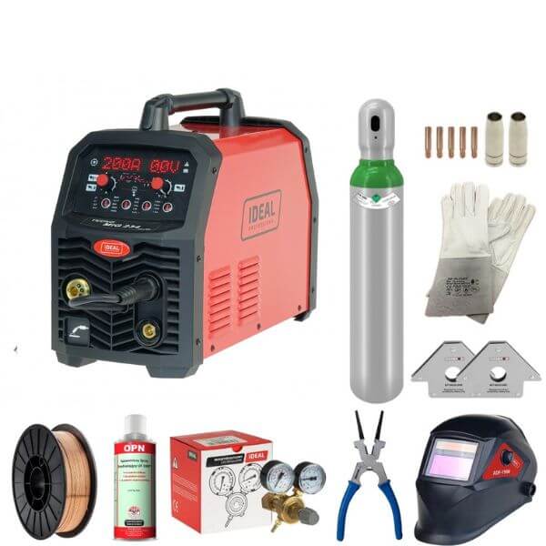 - Dostawa obejmuje urządzenie z profesjonalnym uchwytem spawalniczym MIG 24 o długości 3 metry uzbrojonym pod aluminium, przewodem elektrodowym o długości 2 metry, przewodem masowym o długości 2 metry, rolkami do podajnika 1,0-1,2 do aluminium oraz 0,8-1,0 do stali.